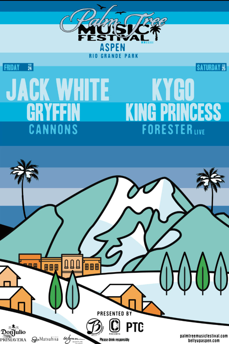 Produced by Belly Up Aspen, Palm Tree Music Festival is a two day outdoor event downtown Aspen in Rio Grande Park. Featuring headliners Kygo & Jack White, the series will include performances from King Princess, Gryffin, Forester, and Cannons (Live). Tickets on sale now.