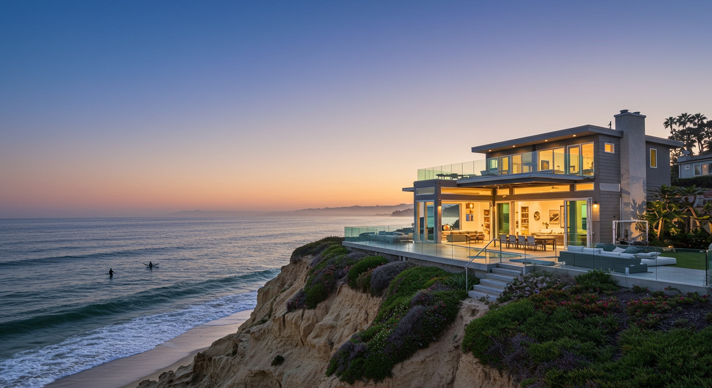 Enjoy your morning coffee to the sound of the ocean while watching surfers at one of the most iconic Southern California surf breaks. Welcome your guests in grand style through La Cantina back doors that open up to an entertainers paradise or retreat to the top deck for white-water ocean views from La Jolla to Dana Point and enjoy a panoramic sunset.
